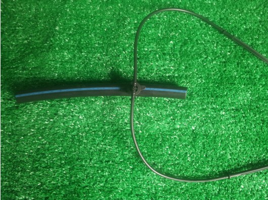 1.将二通分水器(或四通分水器)与压力补偿滴头插在一起,接口为锥形插口,直接插在一起即可。 2.将4mm的滴箭毛管分别插在分水器的几个倒刺接头处,毛管长度根据实际情况而定。 3.将滴箭带有长流道的一端插入毛管里面,确保整个流道全部插入毛管内部。