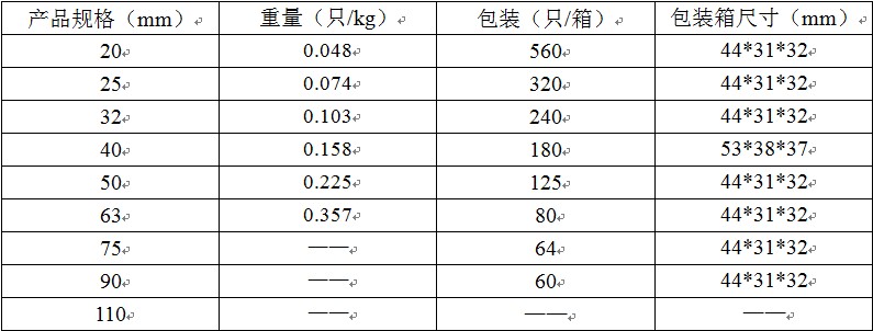 其中“L”管件长度,“l”表示承插口长度,“Φd”表示管件公称内径,“ΦD”管件公称外径,1.0MPa=10公斤