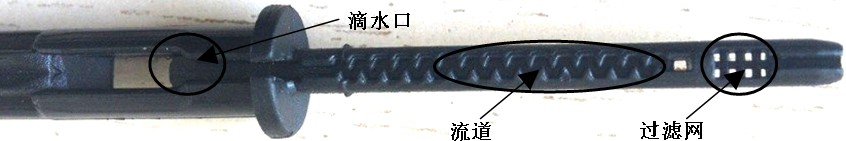 3.滴箭柄部长约5cm,设有精细迷宫流道,插入内径4mm左右的软管中。